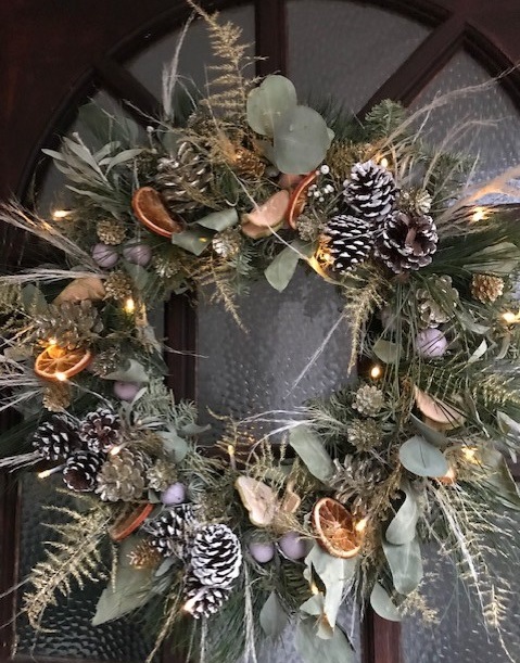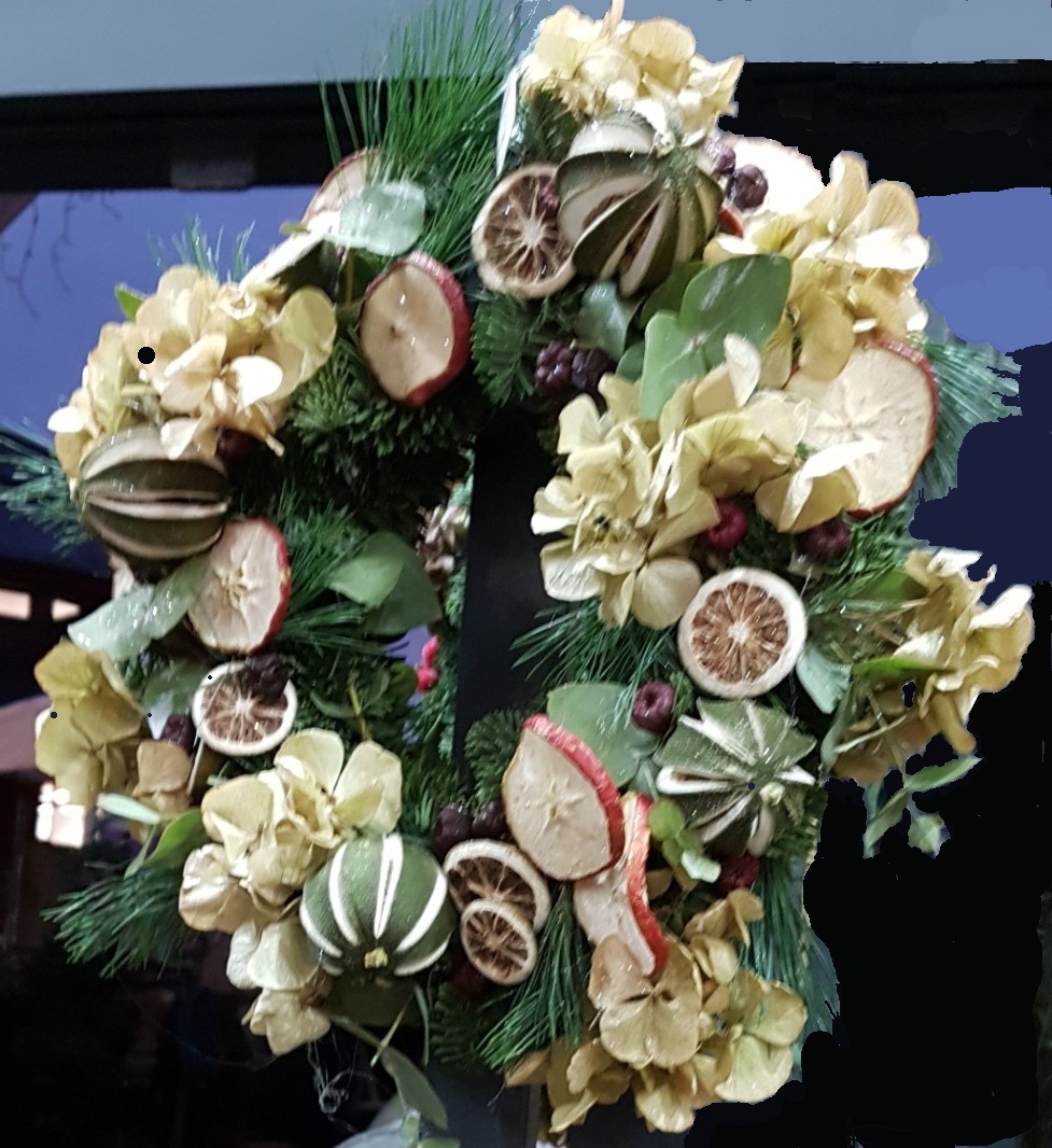 Fresh green bouquet, chrysantheum, viburnam, hydrangeas and yellow roses